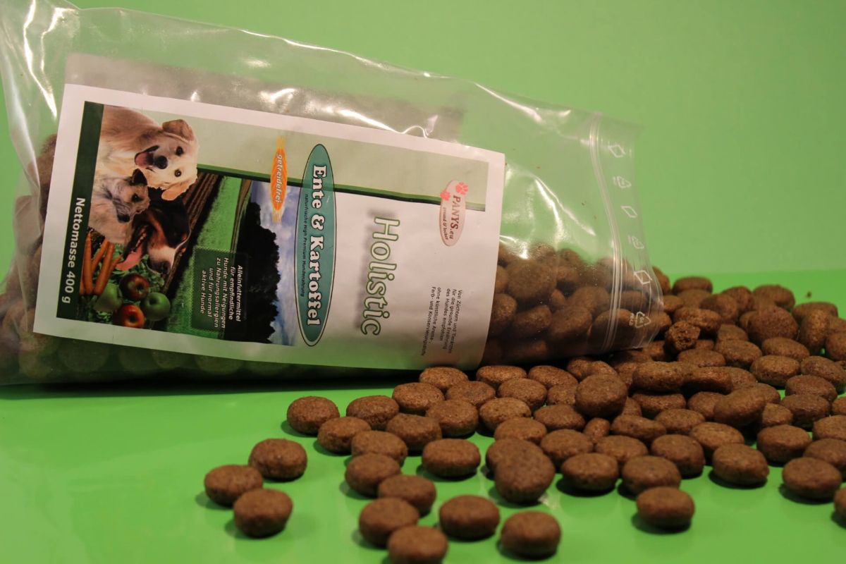 Kartoffelflocken (40%) Entenprotein (25,0 %) Rübentrockenschnitzel Geflügelfett Kartoffelstärke (10,0 %) Volleipulver Hefe Lachsöl (1,0 %) Geflügelleber hydrolisiert Kräutermischung aus: (Petersilie, Rosmarin, Brennessel, Kamille, Salbei, Thymian, Koriander, Löwenzahn, Süßholz), Inulin (Zichorie) (0,10 %) |