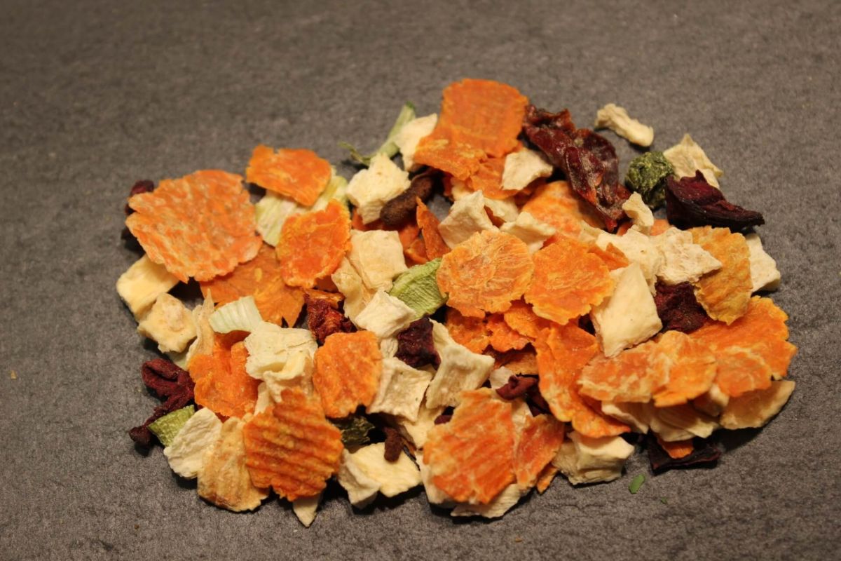 Möhrenflocken getrocknet, Sellerie getrocknet, Rote Beete getrocknet,